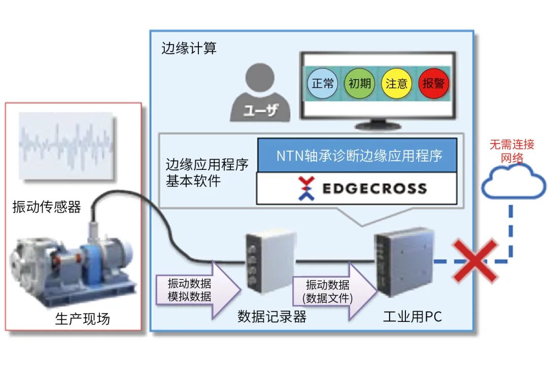 NTN在IoT平臺Edgecross6)上開發了作動軸承診斷應用程序(圖8),并提供不需要接入互聯網,不需要進行詳細的設定便能提供狀態監測功能7)的工具。詳情請參考相關講解報道。